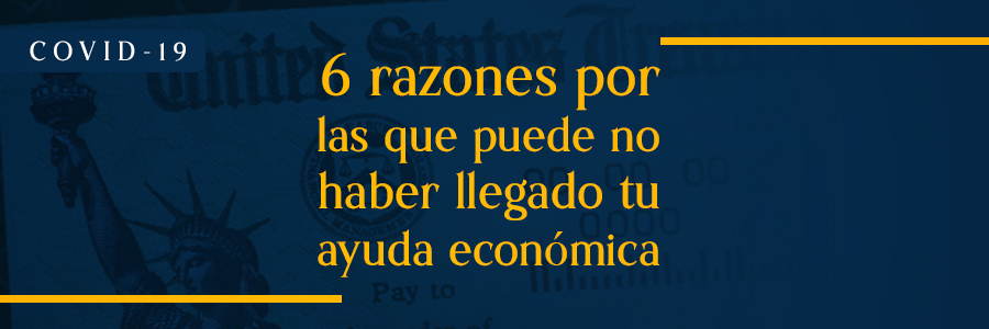1. No ha recibido un reembolso de impuestos por depósito directo en los últimos años Si recibió un reembolso de impuestos federales en 2018 o 2019, la declaración de impuestos más reciente se está utilizando como el factor determinante para los pagos de estímulo. Sin embargo, en caso de que debas dinero al gobierno federal en los últimos años o si decidiste recibir el cheque en papel, es probable que no tengan la información de tu cuenta bancaria.